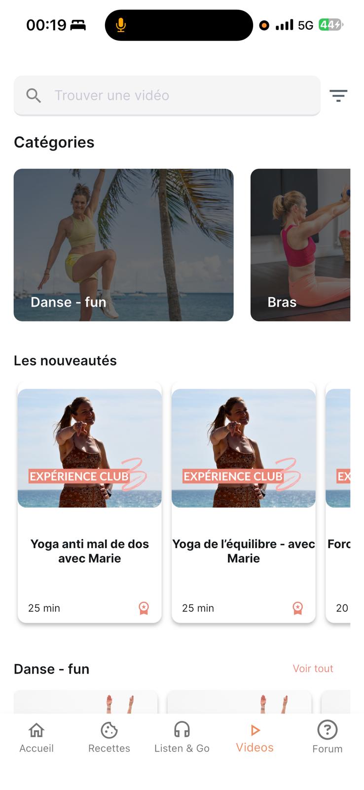 - Favoris : Ajoute tes vidéos de sport et recettes préférées